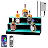 LED lighted liquor bottle display shelf 24 Inch, 3-step Illuminated shelf. 3 Tier Home Bar Drinks Commercial Lighting Shelves with Remote Control
